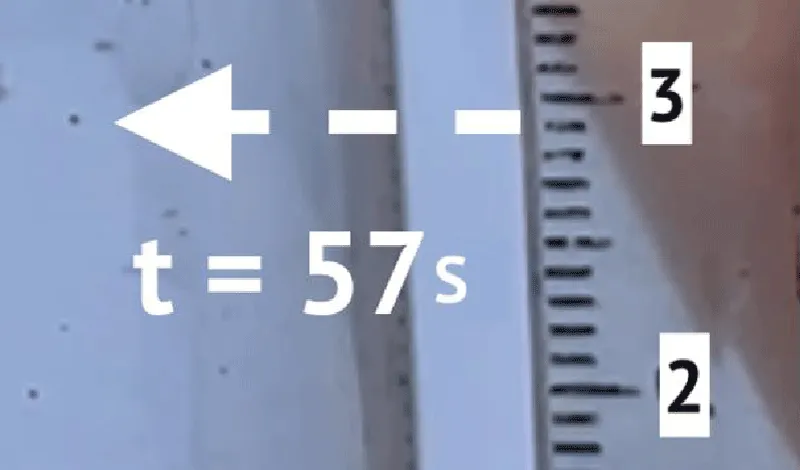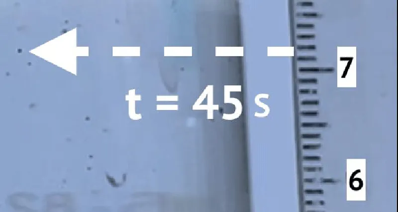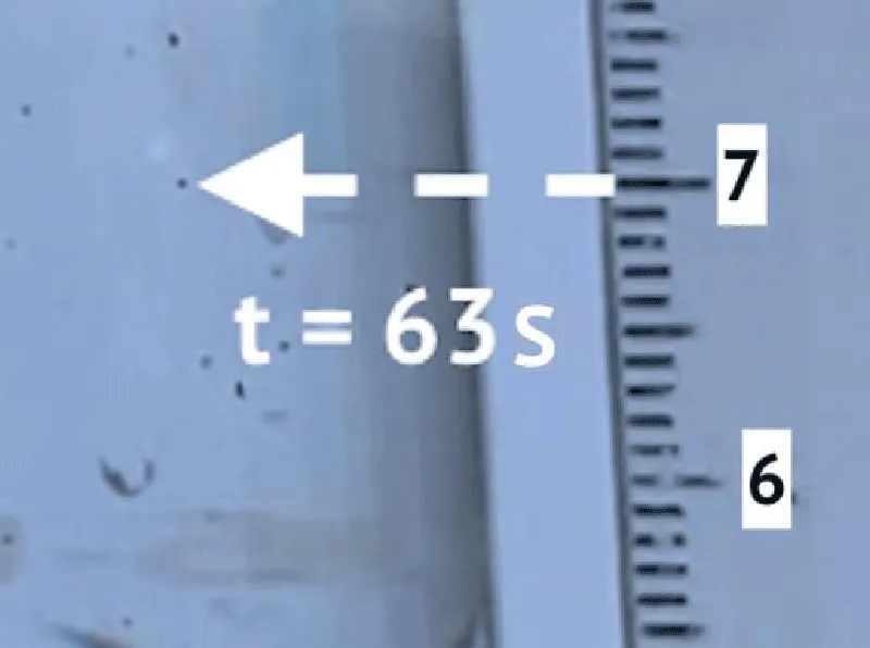 Figure 5: The self-ascent of a microplastic particle. The time is 63 seconds from the beginning of the experiment, and the distance from the bottom of the chamber is 70 mm.