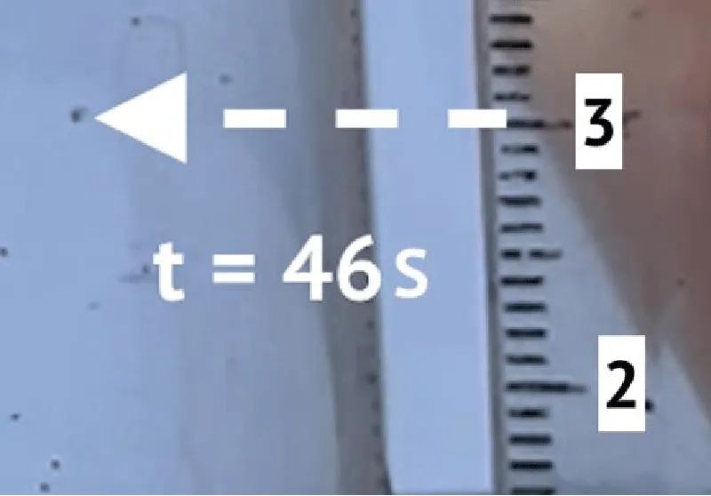 Figure 4: The initial suspended state of the microplastic particle. The time is 46 seconds from the start of the experiment, and the distance from the bottom of the chamber is 30 mm.